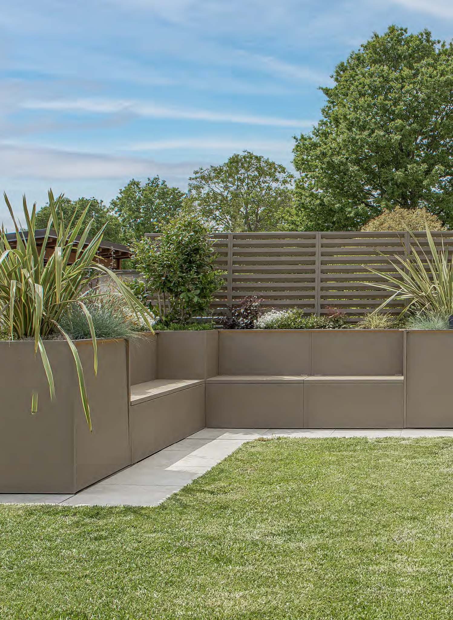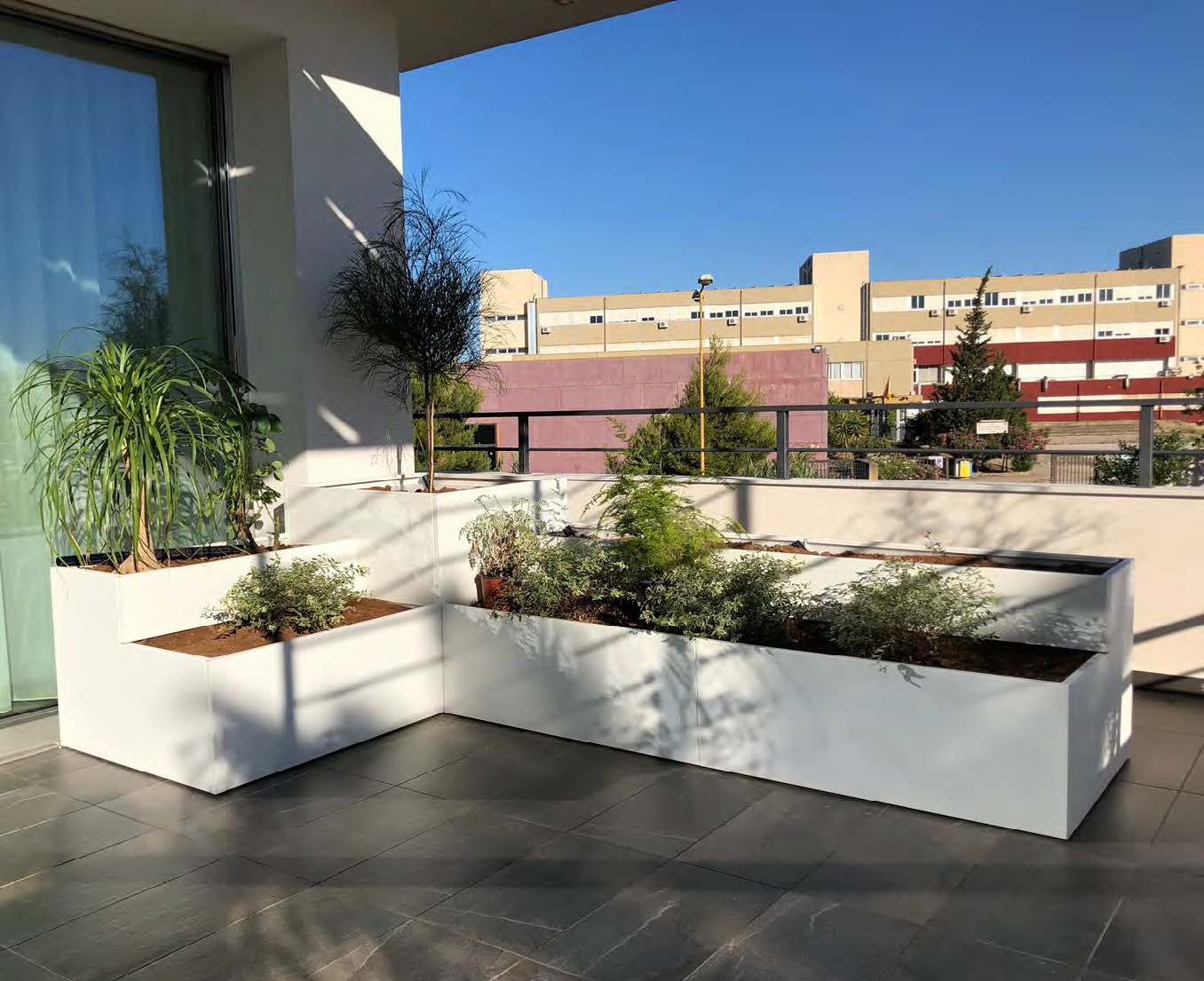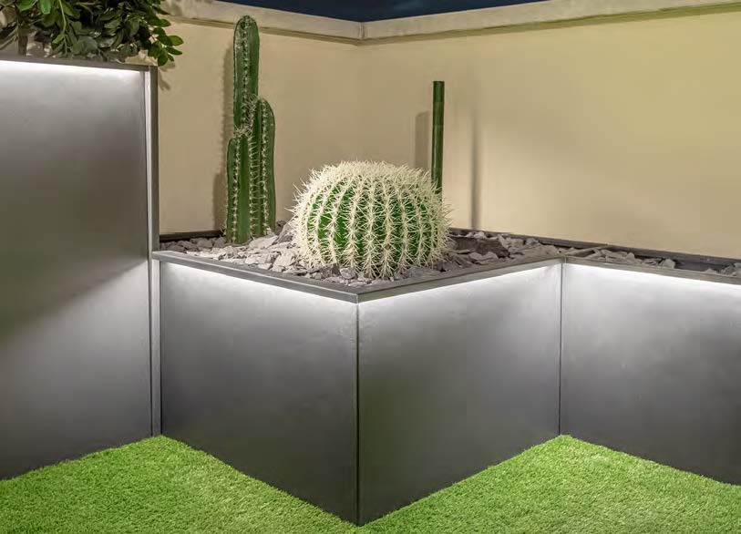 Die selbst bewässernden Pflanzentröge können individuell auf das gewünschte Maß angefertigt werden und können somit kleine aber auch sehr große Flächen abdecken.