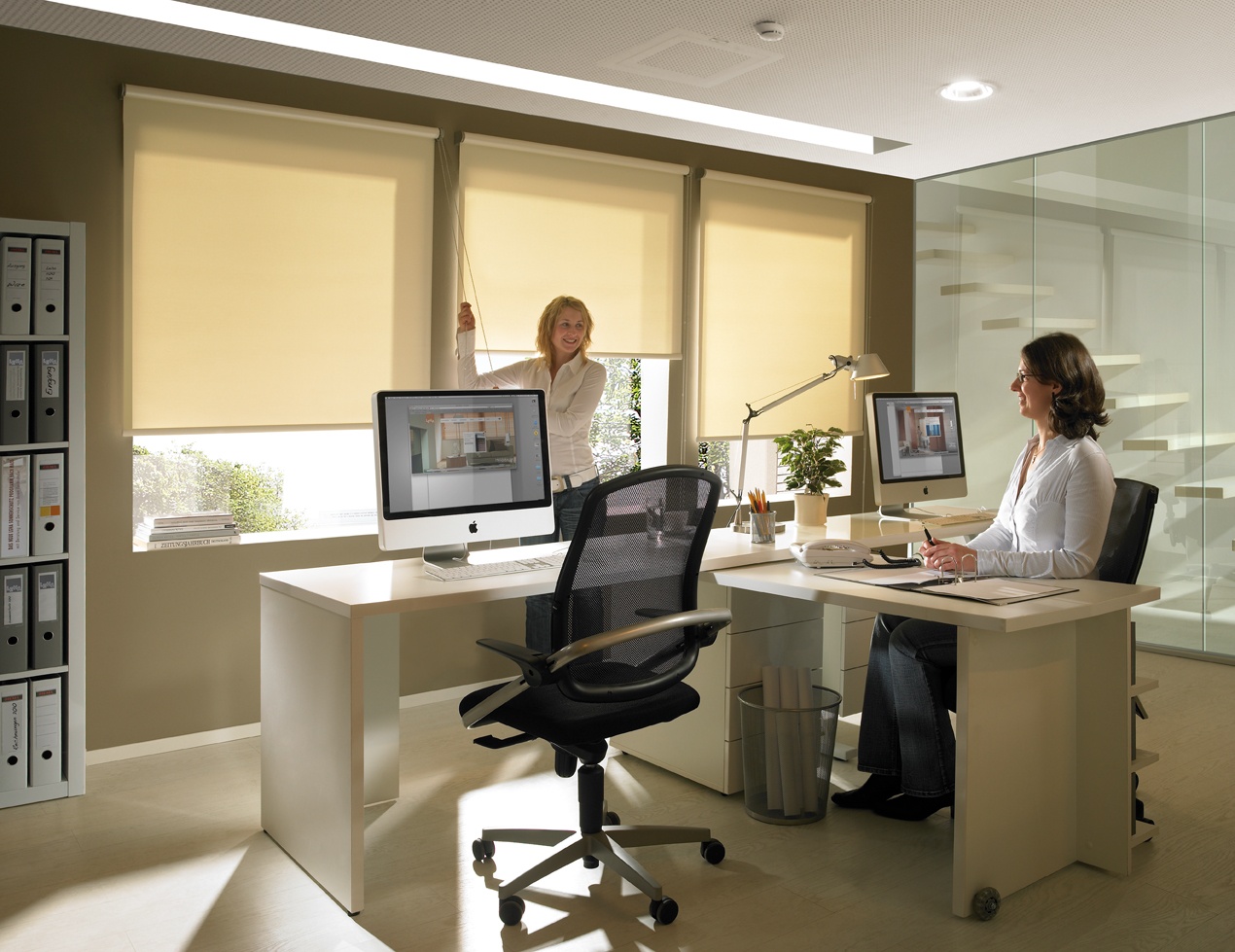 Mit Rollos aus Stoff erzielen Sie eine ganz ähnliche Lichtwirkung wie mit einem Vorhang. Durch die sehr große Stoffauswahl findet sich für jede Raumsituation das richtige Rollo. Ideal für große rechteckige Fenster und Glasfronten.