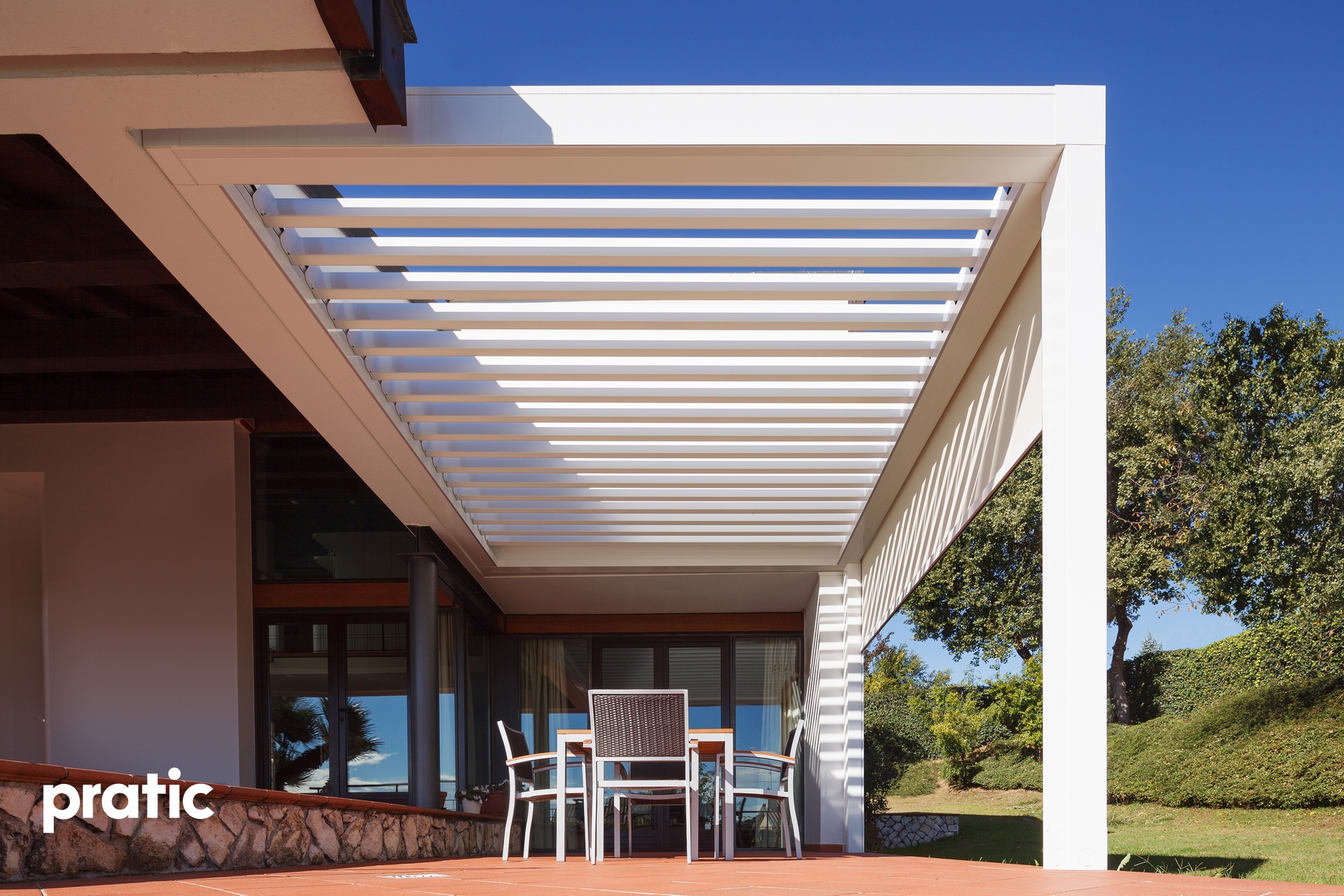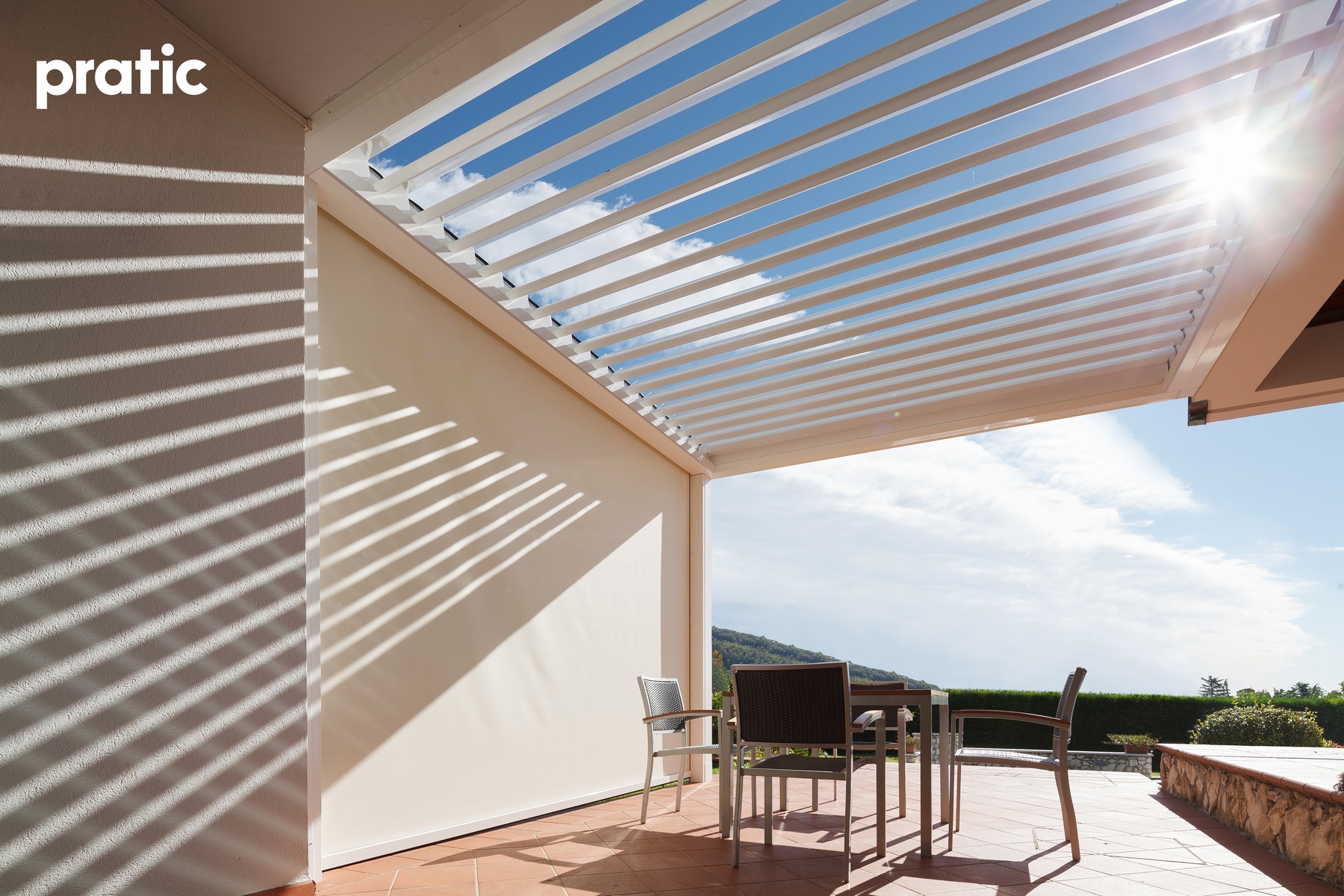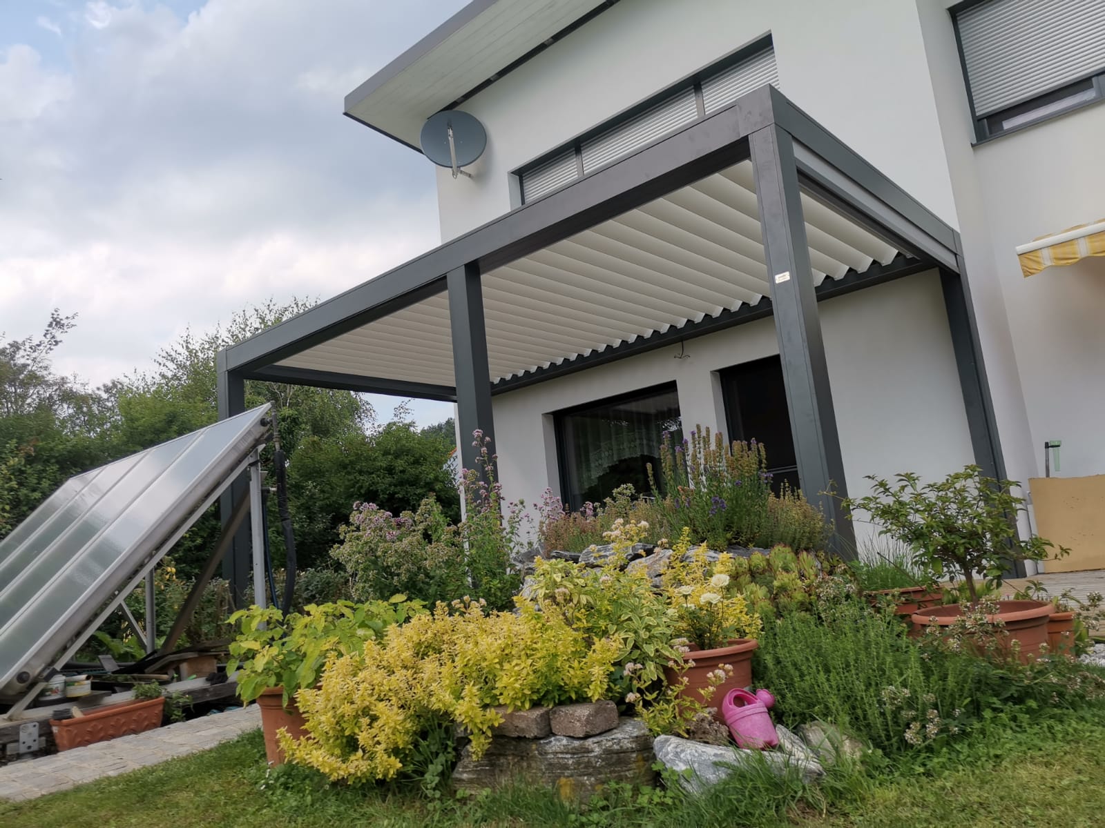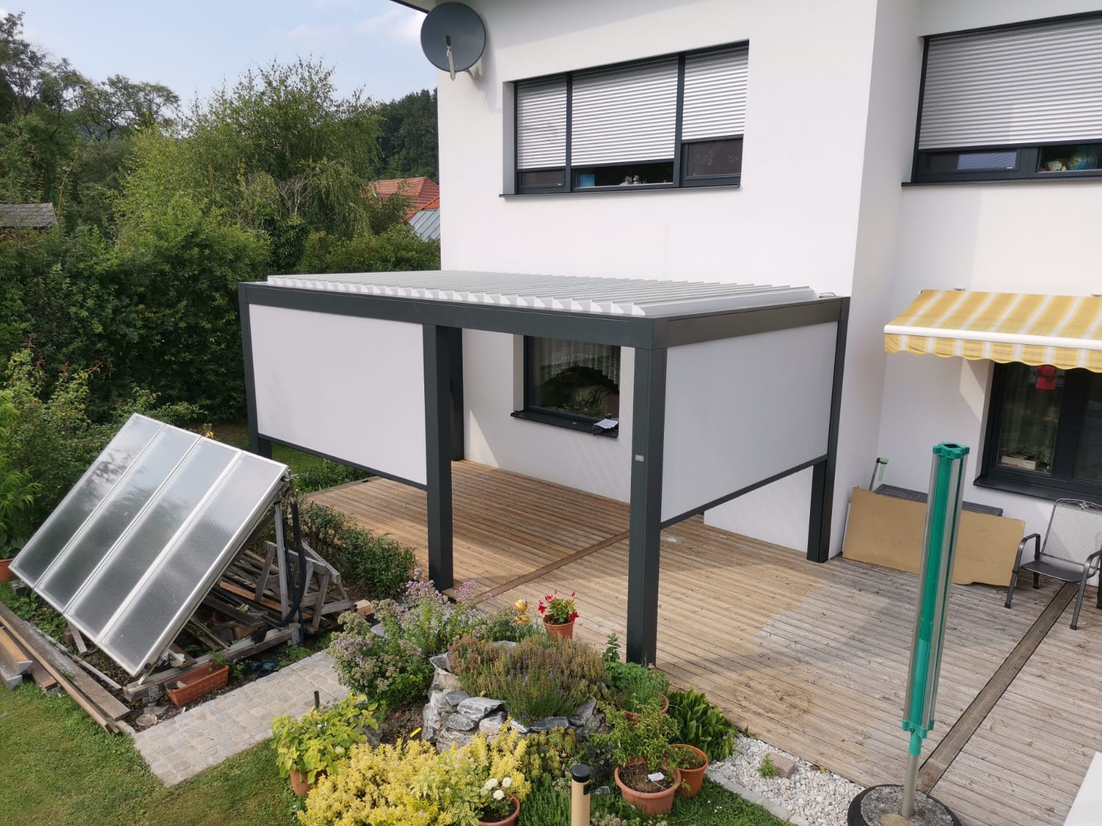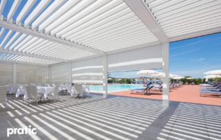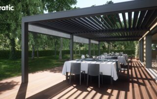 Modernes Design gepaart mit hoher Qualität- Lamellendächer aus Aluminium. Mit Lamellen, die bis zu 140° drehbar sind können Sie den Sonneneinfall und die Luftzufuhr selbst regulieren. Es dient nicht nur zur Erzeugung von Schatten, sondern ist auch ein zuverlässiger Regenschutz.