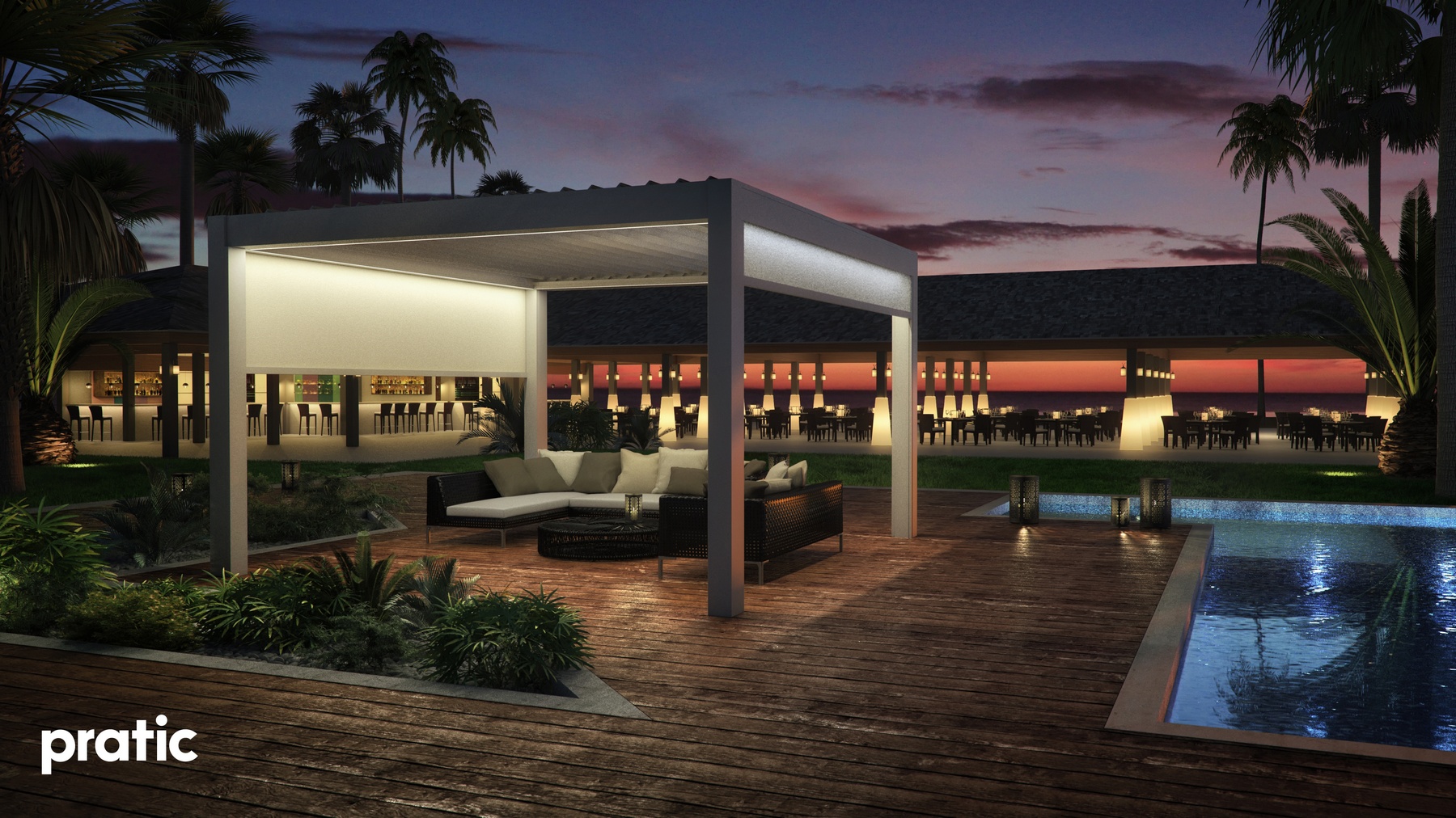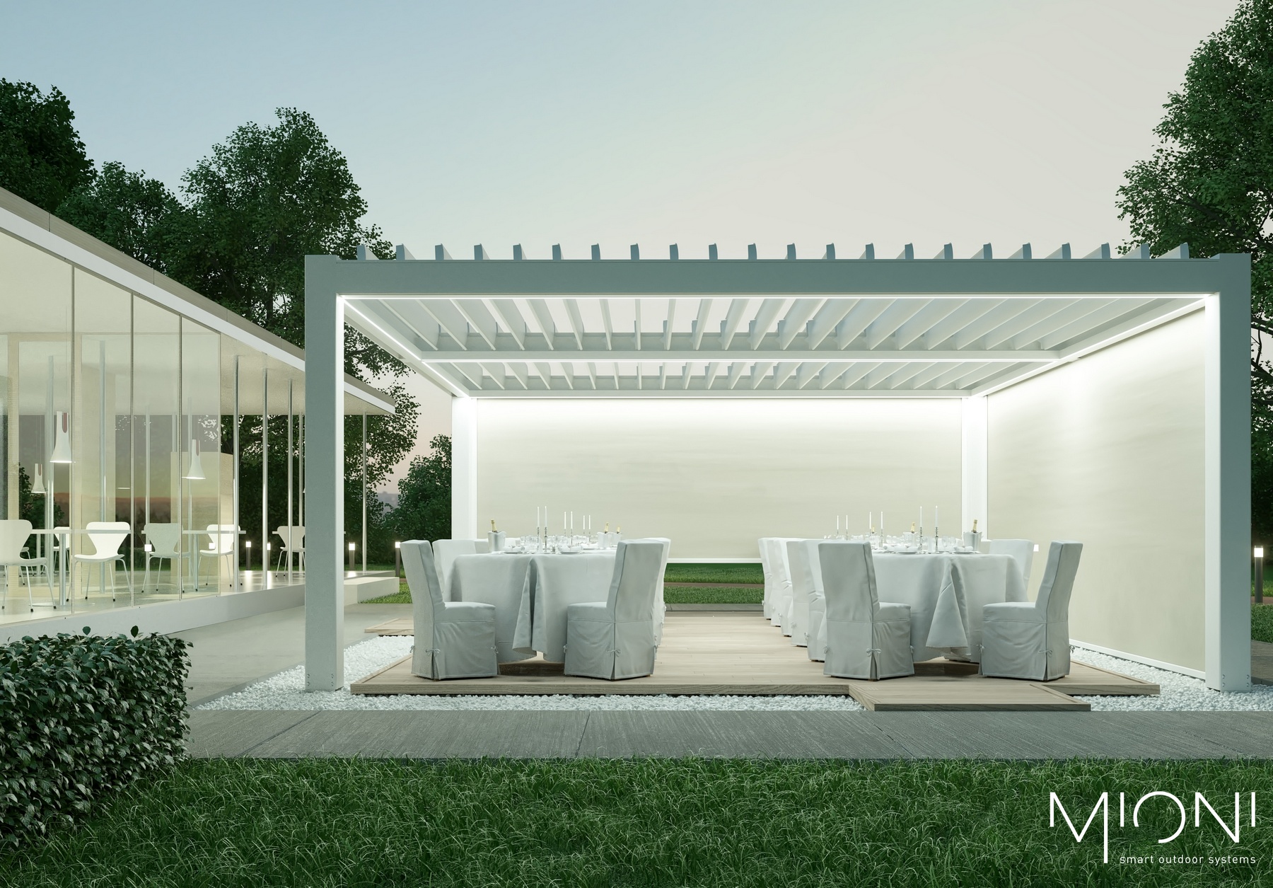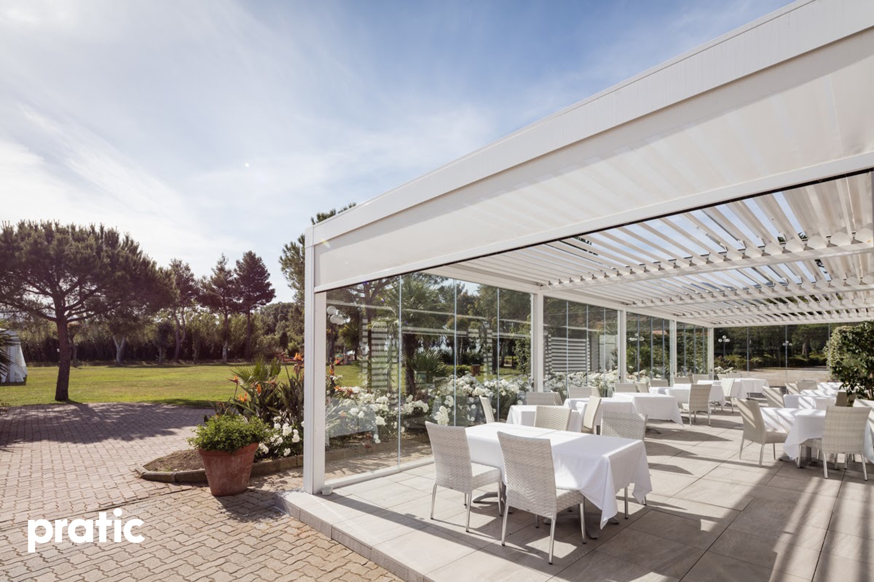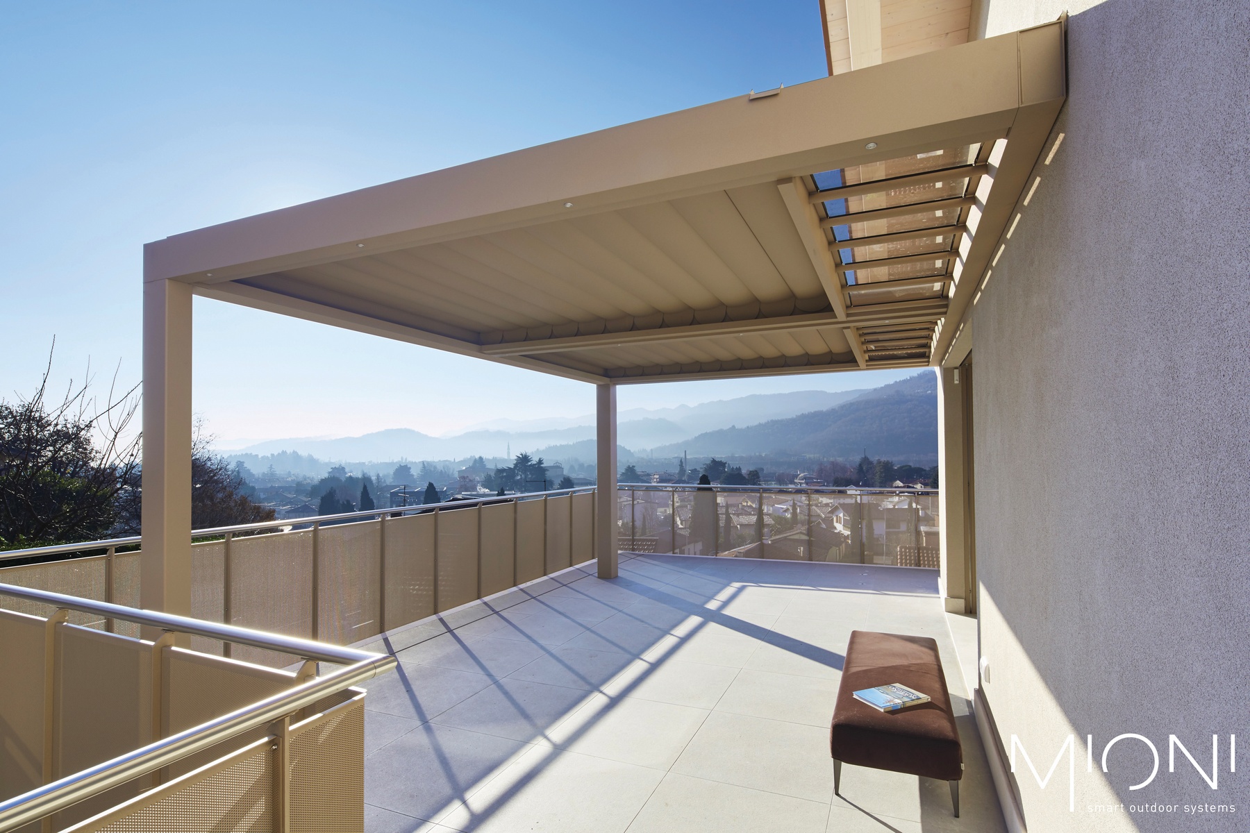 Modernes Design gepaart mit hoher Qualität- Lamellendächer aus Aluminium. Mit Lamellen, die bis zu 140° drehbar sind können Sie den Sonneneinfall und die Luftzufuhr selbst regulieren. Es dient nicht nur zur Erzeugung von Schatten, sondern ist auch ein zuverlässiger Regenschutz.