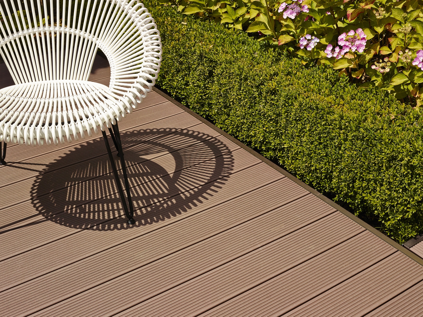WPC-Volldielen werden für den Terrassenbelag genutzt und bestehen aus einem speziellen Holz-Kunststofffasergemisch.